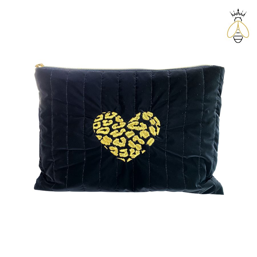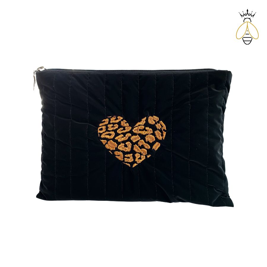 Bu çanta, gold renkteki kalp nakışı ve leopar deseniyle öne çıkıyor. Özel tasarım detayları, çantayı sıradanın ötesine taşıyor. Kapitone kumaşı, çantayı hafif ve taşınması kolay kılarken, iç astarı ise parlak asker deseniyle içerideki detayları keşfetmeye davet ediyor.