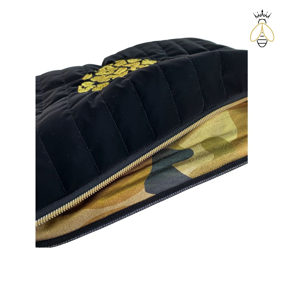 Gold Kalp Nakışlı Siyah Kapitone Çanta, konfor ve şıklığı bir araya getiren özel bir tasarım sunuyor. Siyah kapitone kumaşı, çantayı sadece şık değil, aynı zamanda kullanımı son derece konforlu kılan bir dokunuşla sarar.