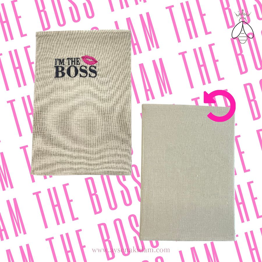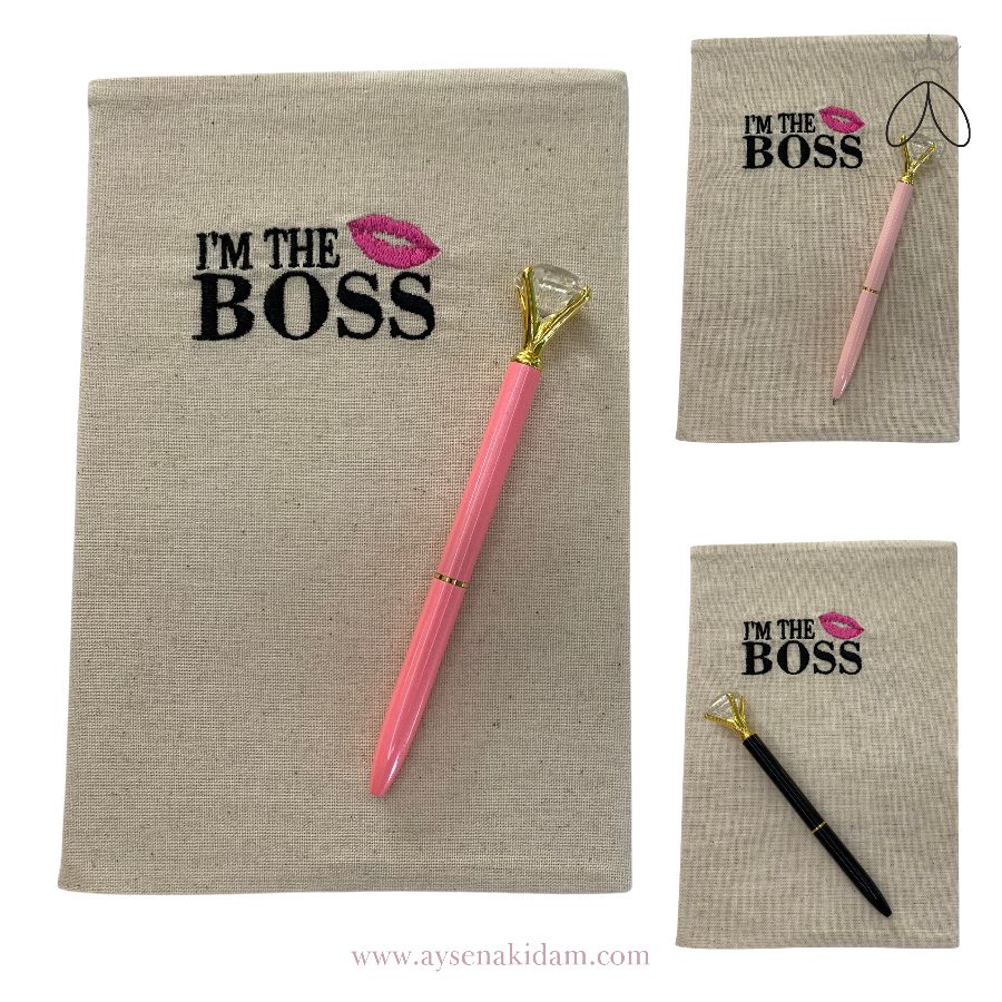 Defterin üzerindeki "I AM THE BOSS" ifadesi, kişisel ifadenizi güçlü bir şekilde yansıtmanıza olanak tanıyan çarpıcı bir detay. Sloganın özgüveni ve liderlik duygusunu yansıttığı açıkça görülüyor.